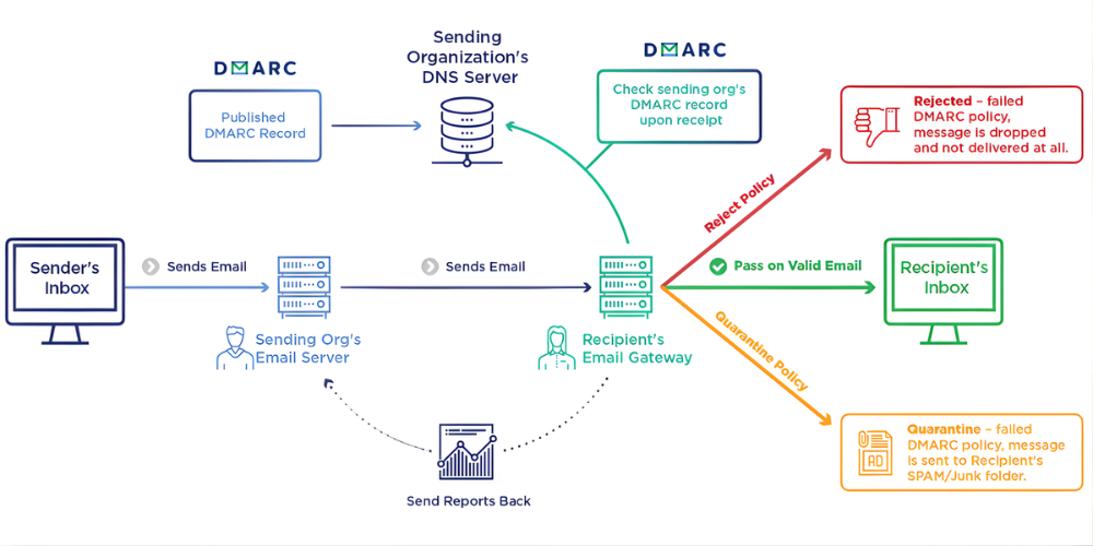 Proper DMARC implementation increases inbox placement for Microsoft 365, Google Workspace, cPanel, or any business email platform.