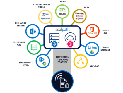 Encryption (disk, files, devices), Data Loss Prevention (DLP), and Secure File & Email Access to keep sensitive business data safe.