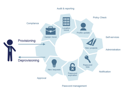User Provisioning & Deprovisioning, Identity Lifecycle Management, and Access Certification & Policy Enforcement to manage identities throughout their lifecycle.