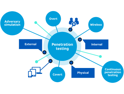 Network Penetration Testing, Web & Mobile Application Testing, and Wireless & Cloud Pen Testing to simulate attacks and uncover exploitable flaws.